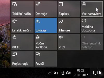 ![]() Podnapise lahko tudi prilagodite. Kliknite na ikono za obvesila (spodaj desno, glej sliko) in izberite Vse nastavitve. |