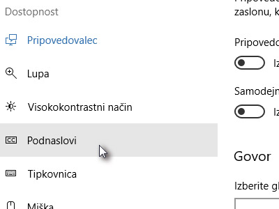 Podnapisi v privzetem predvajalniku Windows 10 |
