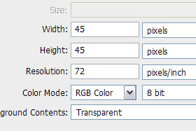 Odprite nov dokument velikosti 45×45 in Background contents nastavite na Transparent.