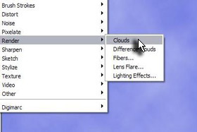 Duplicirajte layer in kliknite tgoraj Filter, Render, Clouds in izberite Opacity layerja 40%.