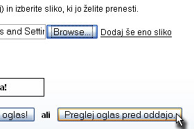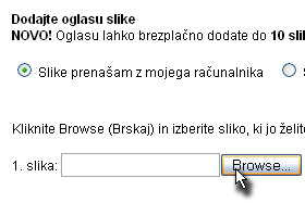 Dodajte oglasu še sliko, tako da v polju slika kliknete na gumb Browse...