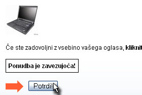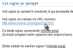 Vaš oglas je sprejet.