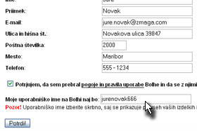 Prikaže se vam stran, kjer vpišete osebne podatke in spodaj poljubno uporabniško ime.