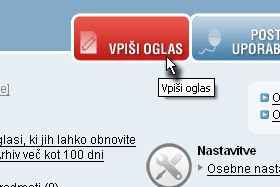 Kliknite na Vpiši oglas. |