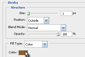 Size določite 1 px n Color določite # na vrednost 895E26 ter potrdite na gumb OK. |