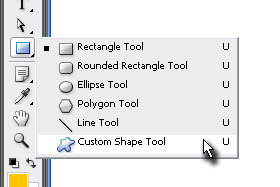 Držite z miško na orodju Rectangle Tool (bližnjica je tipka U) toliko časa, dokler se ne rpikažejo ostala orodja. |