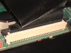 Previdno odklopite kabel od tipkovnice, ker so kabli zaščiteni je potrebno dvigniti črno zaklopko, nato gre kabel lepo ven.