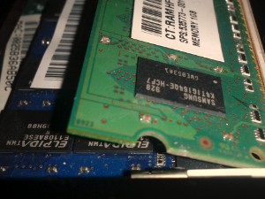 Če boste zamenjali pomnilniški modul, porinite zaskočnika na stran (modul se bo sam dvignil), ga odstranite ter vstavite novega.