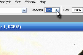 Zgoraj v orodni vrstici določite Opacity na 30%.