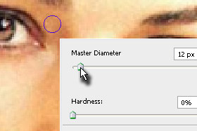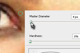 Kliknite z desnim miškinim gumbom na dokument in izberite Master Diamter (velikost čopiča) v še manjši velikosti kot prej (glej sliko). Hardness določite 0%. |