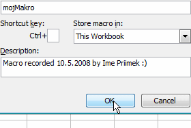 Odprite Microsoft Office Excel. Kliknite na Orodja, Makri, Posnemi nov makro.