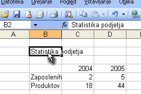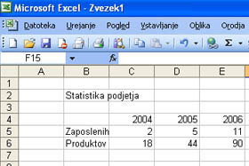 Odprite nov Excel-ov dokument in oblikujte podoben dokument kot moj na sliki.