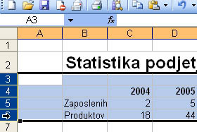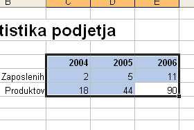 Označite z miško leta in spodaj vrednosti (2004, 2005 in 2006).