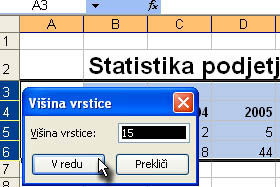 V polje višina vrstice vpišite številko 15 (ali poljubno) in potrdite na gumb V redu.