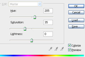 Sedaj pa se malo poigrajte z drsniki in potrdite spremembe na OK. Jaz sem nastavil Hue na 205, Saturation 35 in Lightness 0. |