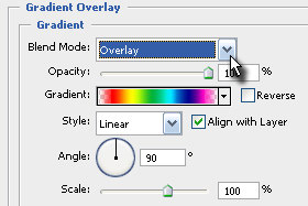 V novem oknu določite Blend mode na Overlay in Gradient izberite poljuben preliv. Potrdite na gumb OK. |
