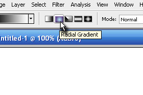 Zgoraj v orodni vrstici določite Radial Gradient (glej sliko).