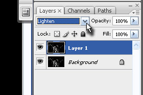 Dupliciranemu layerju določite senčenje na Lighten (glej sliko). |