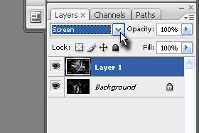 Layerju določite senčenje na Screen (glej sliko). |