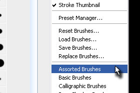 Zgoraj v orodni vrstici kliknite na puščico navzdol (glej sliko), da boste izbrali poljuben stil čopiča...