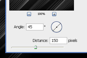V novem oknu določite Angle 45 stopinj in Distance 150 pixels. Potrdite na gumb OK. |