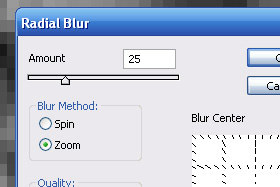 V novem oknu določite Amount 25, Blur Method Zoom in Quality Best. Potrdite na gumb OK. |