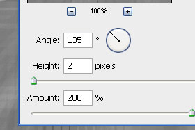 V novem oknu določite Angle 135 stopinj, Height 2 pixels in Amount 200 %. Potrdite na gumb OK. |