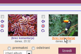 Počakamo... Sedaj vidimo slike, ki smo jih dodali. Če ji želite dodati komentar pritisnite '(brez komentarja)' pod sliko.