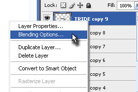 Sedaj pa kliknite z desnim miškinim gumbom na zgornji layer in izberite Blending Options... |