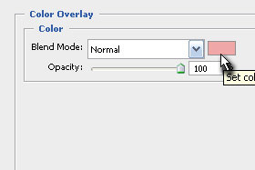 Potem pa na levi strani kliknite na Color Overlay in določite preko kvadratka poljubno barvo ter potrdite na gumb OK.