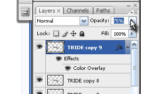 Temu layerju sem jaz še malenkost znižal Opacity na 75% (glej sliko).