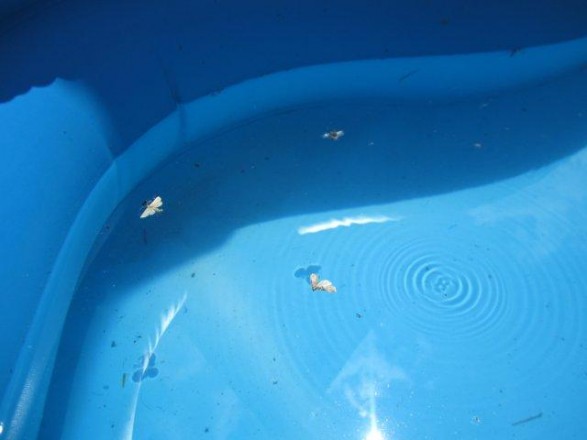 Ker pa vseeno pogrešamo morje, sem postavil napihljivi bazen (4x2m), kjer bi se rad vsak dan (in tudi noč) malo namakal. Prvi dan je bilo super, saj je bila voda takoj topla, drugi dan pa je bil bazen takoj umazan, tako z mrčesom, kot z ostalimi stvarmi.