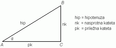 Nasprotno kateto pa potem najlažje dobiš s pitagorovim izrekom: