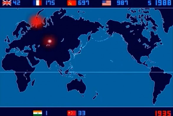 Vsaka država ima svojo barvno piko, ko se detonacija sproži in boste na zaslonu lahko tudi videli zavsako državo, koliko detonacij so sporžili. Na začetku so detonacije počasne in malo dolgočasne, kasneje v letu 1962 pa se akcija šele začne ...