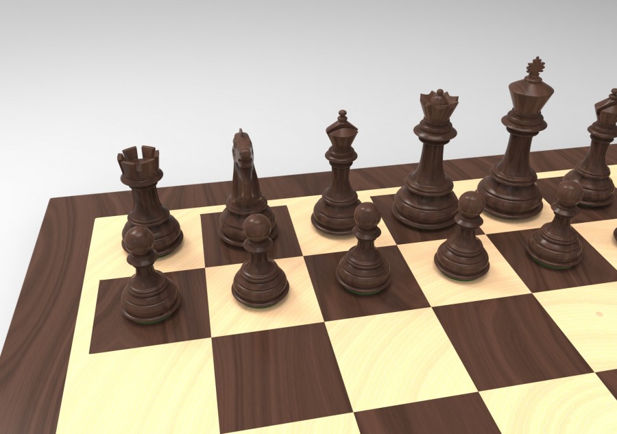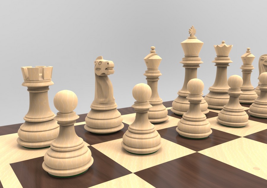 Danes sem dokončal še en izdelek in sicer šahovski komplet. Figure so narejene po fotografiji iz Googla, razen skakača, ki je malce prilagojen po mojem okusu. Sam model je bil narejen v programu Maya, rendiran pa v programu KeyShot. Mnenja dobrodošla.