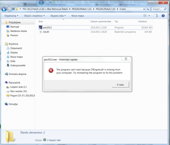 Drugace pa samo pogooglaj DfEngine.dll, ker pise, da ti to manjka. Poisci download in nalozi in daj v mapo kjer je igre, ce pa ne dela pa v kako drugo mapo v mapi igre. To bi moral resiti tezavo.