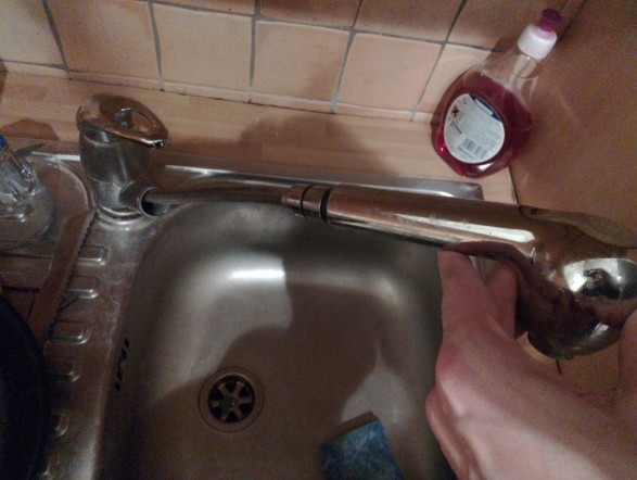 Hecna reč je bila na katero res niti malo nisem pomislil. Pipa ima možnost, da se jo zaradi lažjega pomivanja posode potegne ven in vse kar je bilo potrebno, je bilo malo očistit nastavek na vrhu pipe.