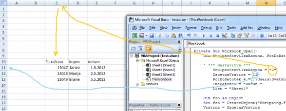 makro se sprehodi skozi vsako vrstico in preveri, ali datoteka z računom že obstaja. Če datoteka obstaja, prekopira formule iz prejšnje vrstice in jim spremeni številko računa.