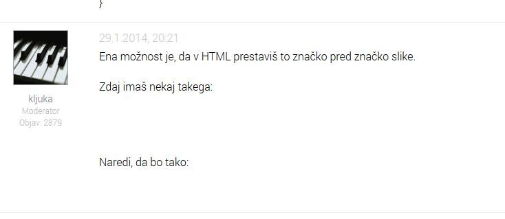 Ena možnost je, da v HTML prestaviš to značko pred značko slike.