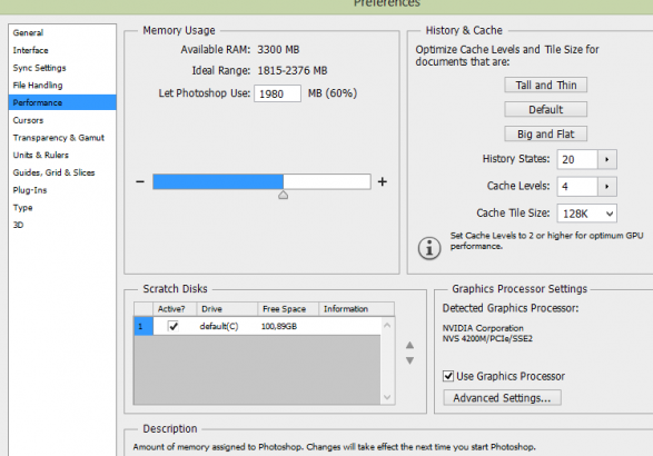 lAhko pa še prej preizkusiš z nastavitvjo v Photoshopu, kjer omogočaš pospeševanje z grafično kartico.