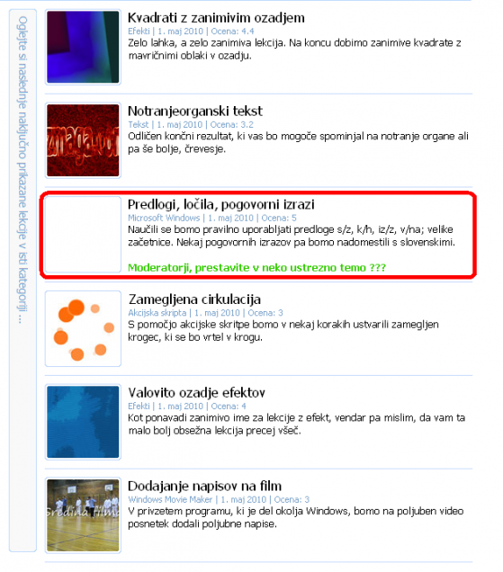 [Neke vrste, to lekcijo sem dejansko sam napisal, a se jo je potem pretvorilo v objavo na forumu ...]