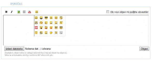 Verjetno ste že opazili novo formo za vnašanje besedila na forumu. Danes pa smo dodali še nove smeškote in upajmo, da vam bodo všeč. Seveda novosti še prihajajo in se bo stran tako kot vedno še naprej razvijala.