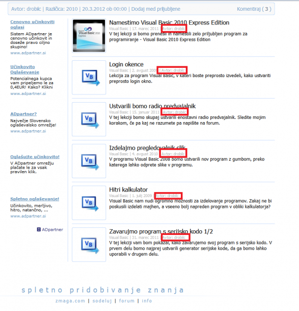 Opazil sem, da se pri lekcijah, avtorji le teh prikazujejo napačno. Prikaže, da je avtor tisti, ki je naredil lekcijo, ki jo gledamo.