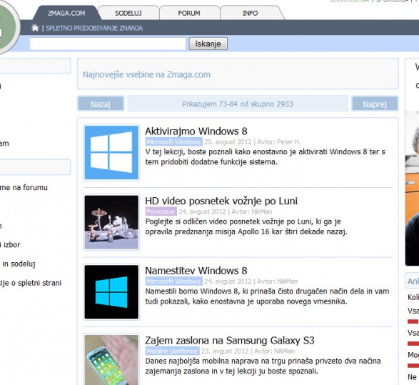 RSS, ob objavi lekcije ali pa sporočila na forumu.