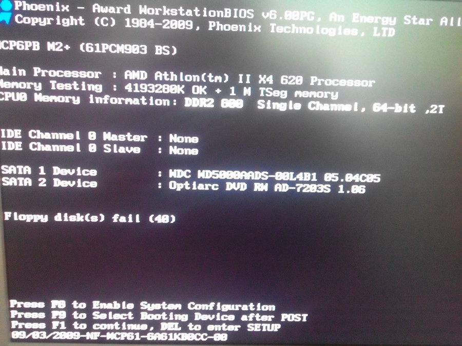 Si spremenil da se ti boota prvo iz diska? Ker zdaj imaš verjetno nastavleno da se ti boota iz cdja.