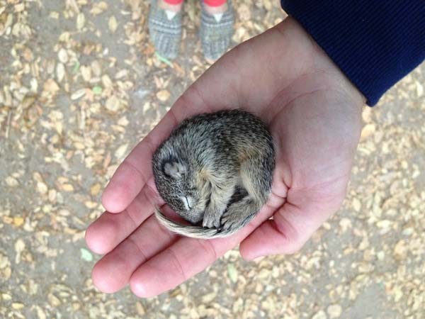 Veverica, katera brez človeške pomoči ne bi preživela