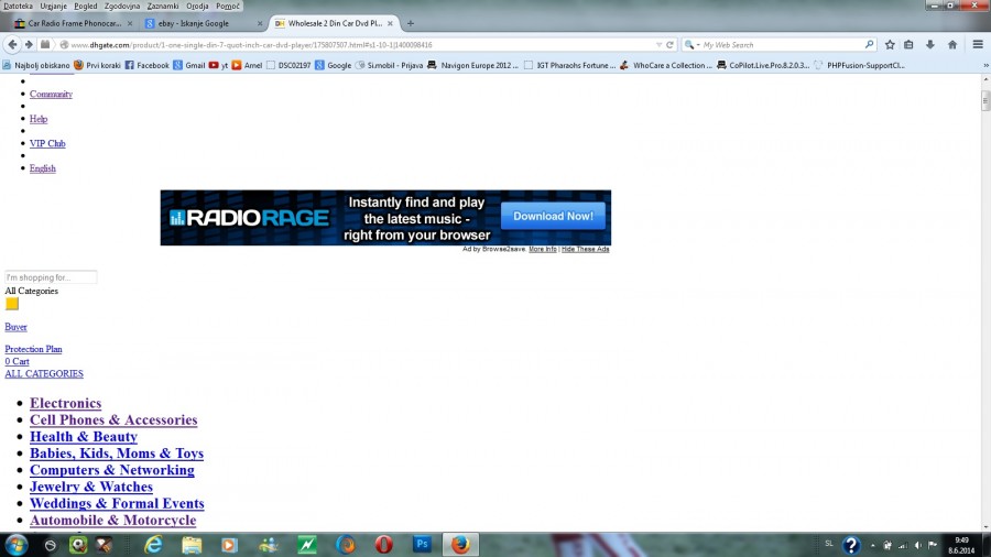 Stran je DHGate.com in tudi meni je njihova začetna stran OK. Ko pa grem na določen artikel mi stran popači. Naprimer napišem "car dvd player" in enter mi stran popači.