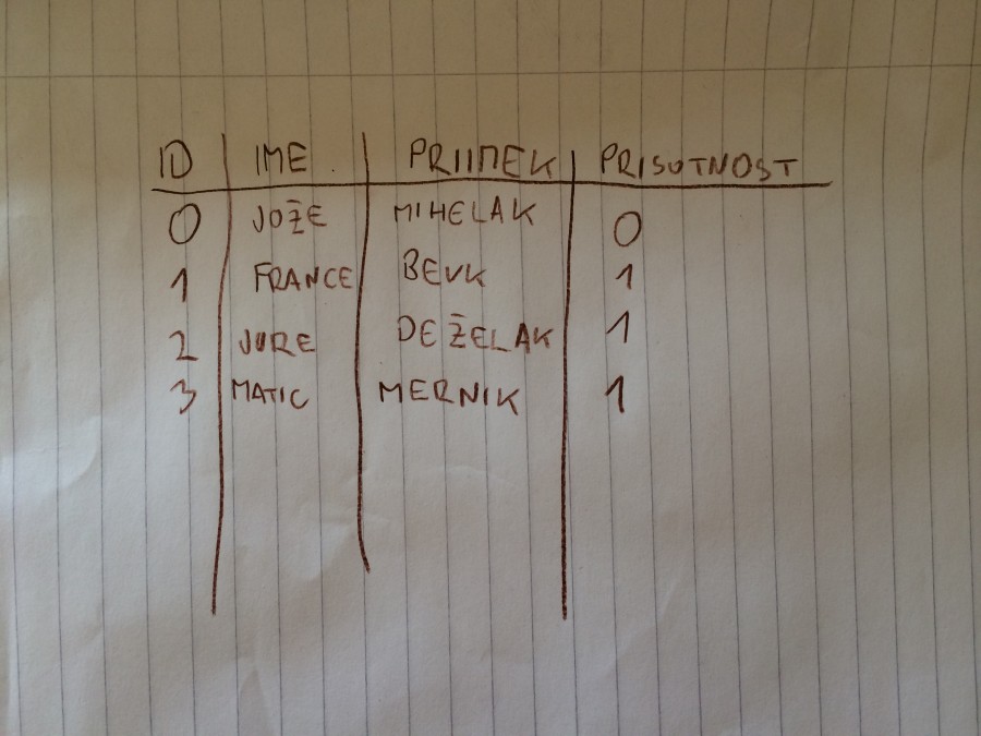 Sešteval bi števila iz tabele prisotnost. Števila so tipa integer.