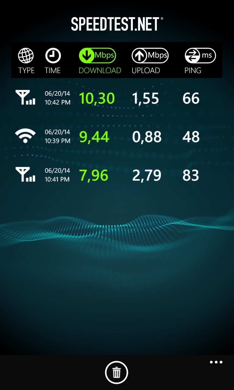 Malo sem se igral z preverjanjem hitrosti na telefonu Lumia 925 in naredil pregled hitrosti na vseh treh možnostih, kot so 3G, 4G in Wi-Fi (doma imam od Amis 10/1 povezavo).