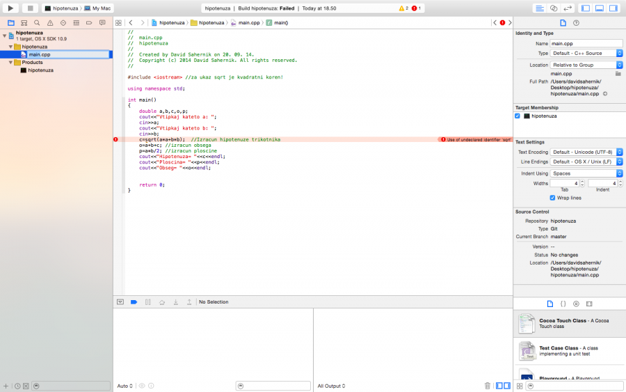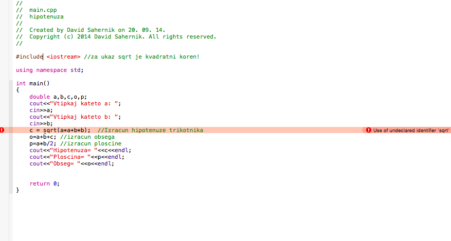 Zdravo!Vprašal bi zakaj mi program javi napaku pri sqrt(koren)?